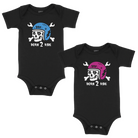 Both designs printed on black onesie