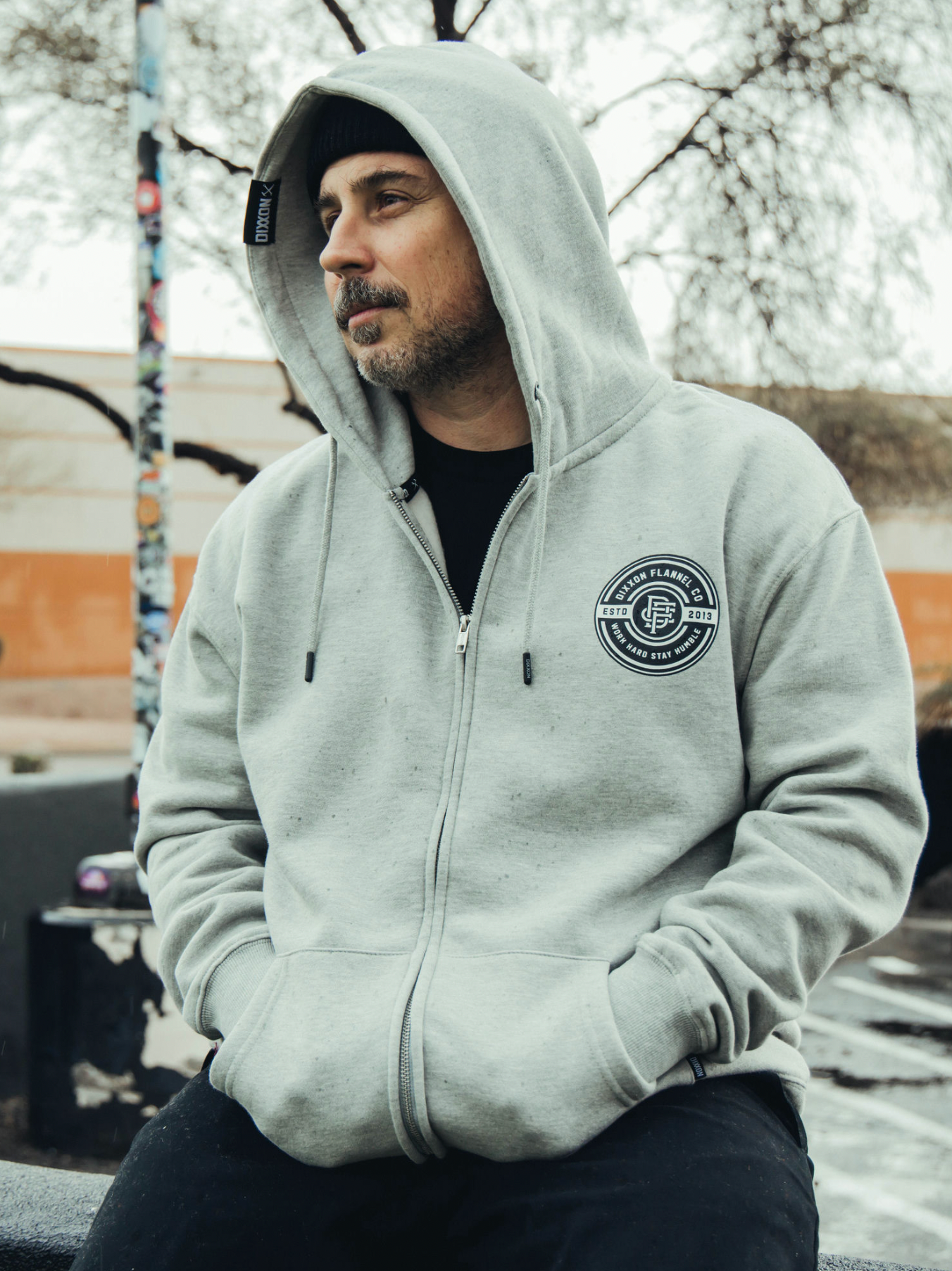 Badge Black/Grey Zip Up Hood
