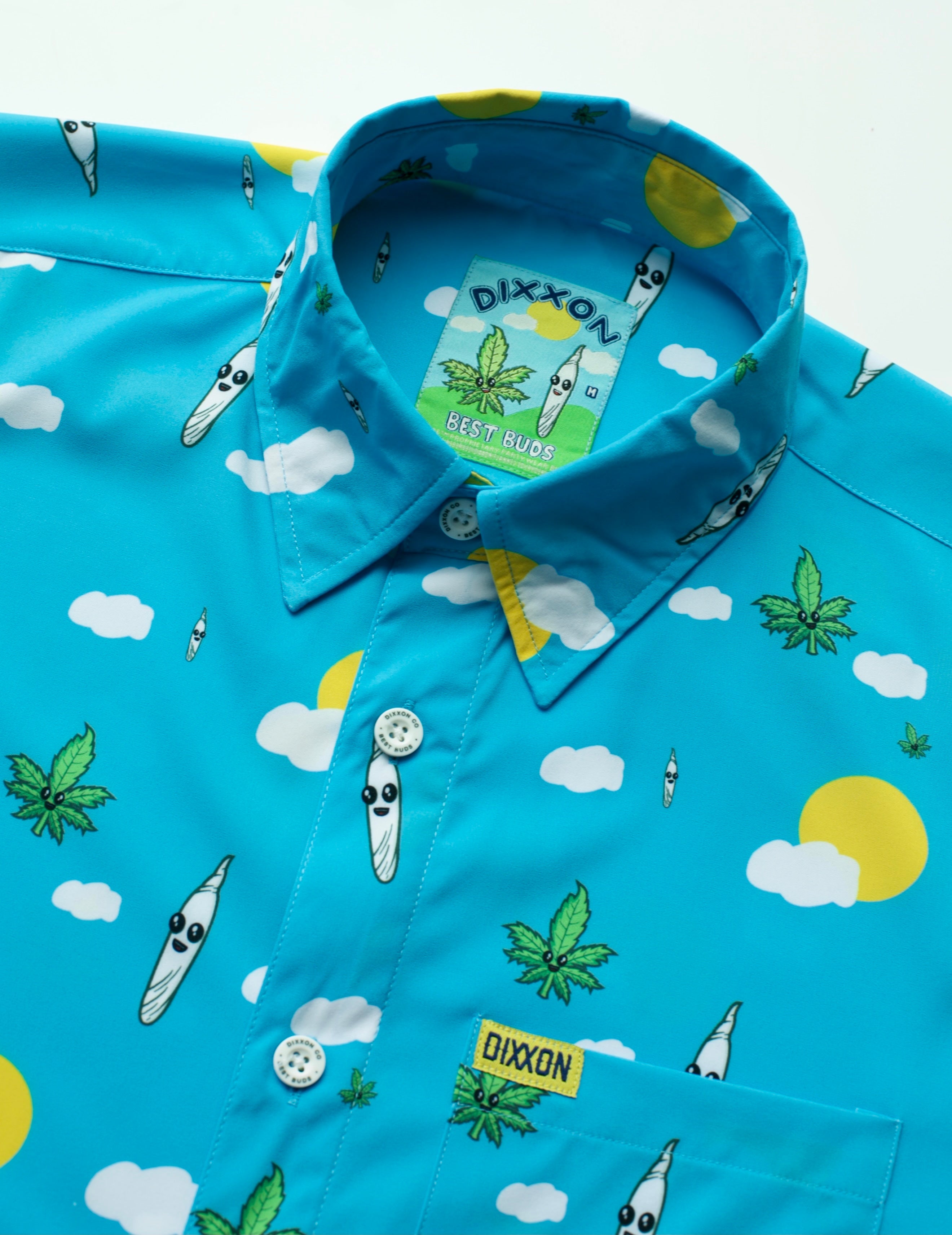 Add vibes to an everyday essential with the Best Buds Party Shirt. Constructed with an easy fluid fabric, this button up party shirt was designed for a comfortable and laid-back wear. Soft, lightweight, and versatile with a shrink and wrinkle resistant finish, the Best Buds is a must-have for any well-curated closet.