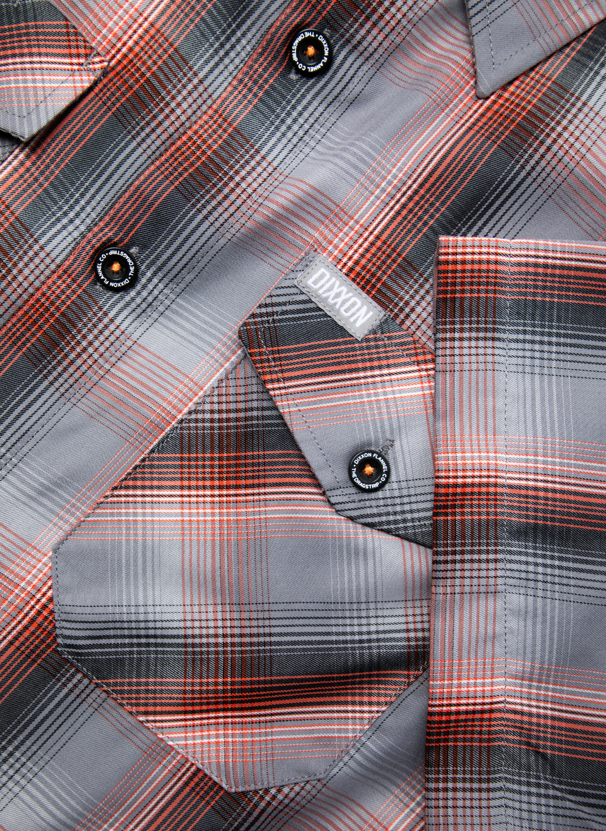 - Dixxon brand tag on the left chest pocket