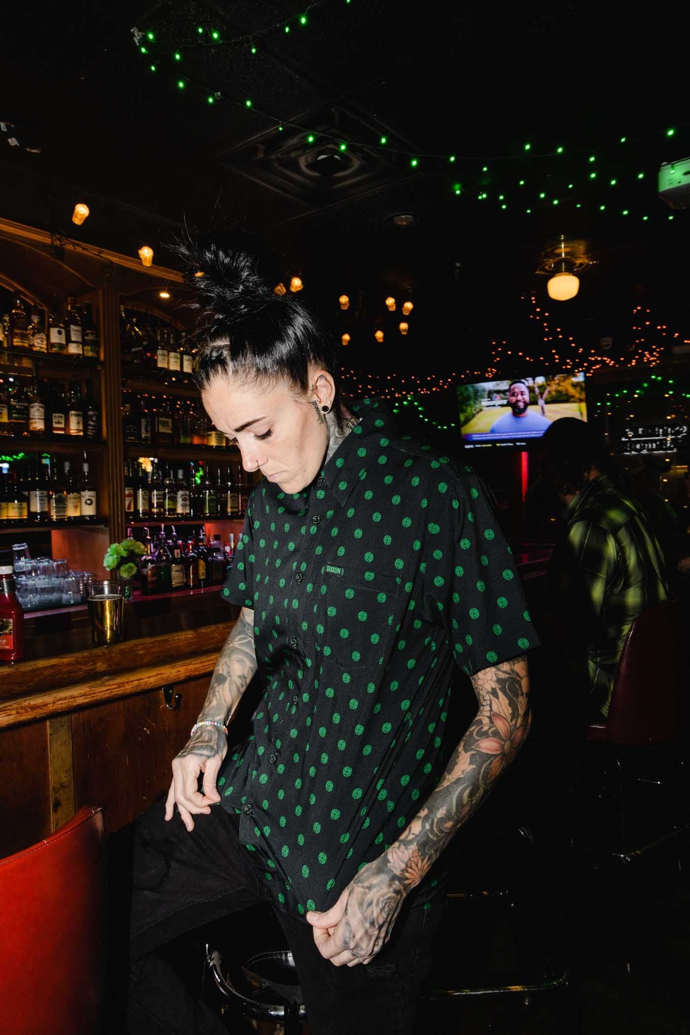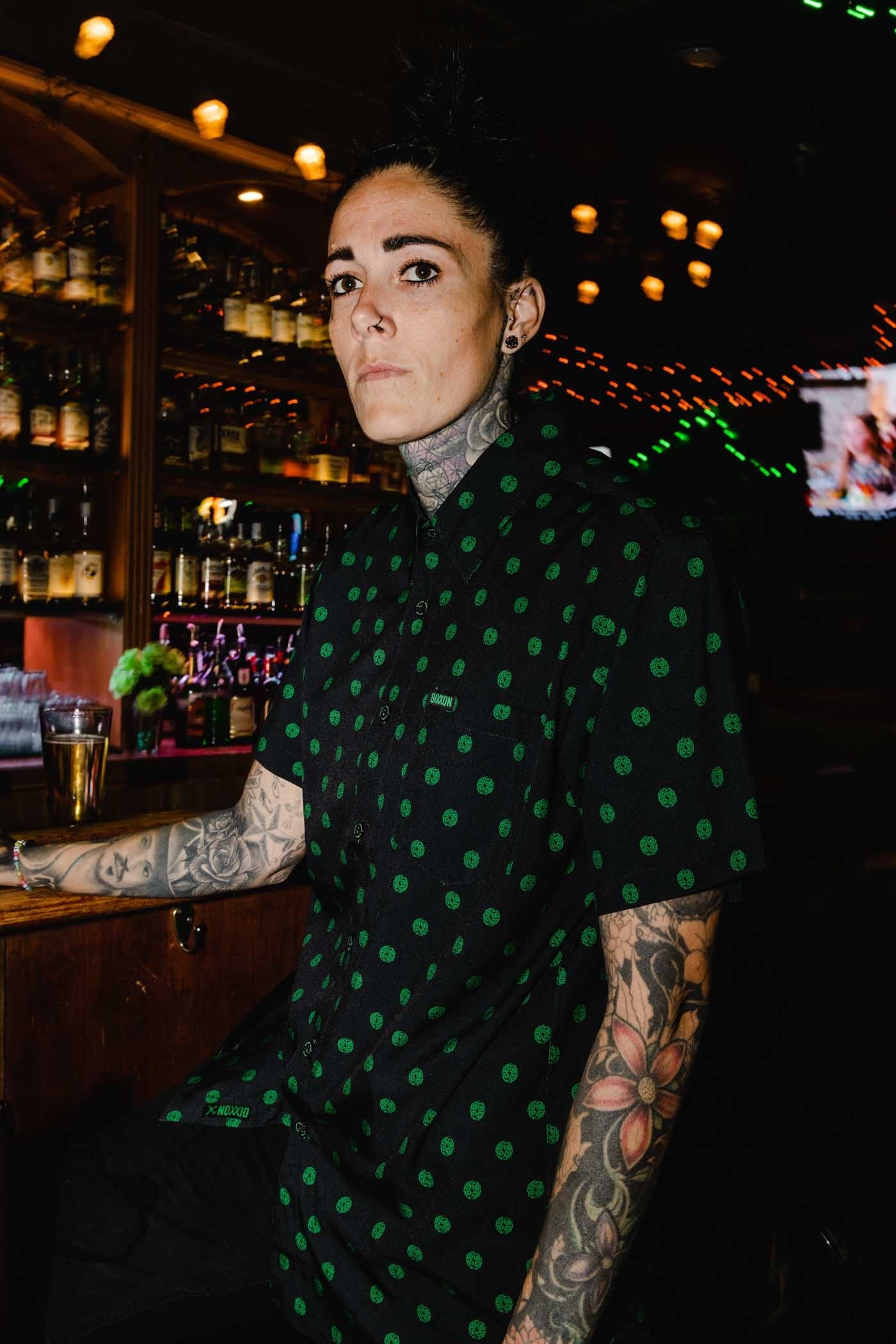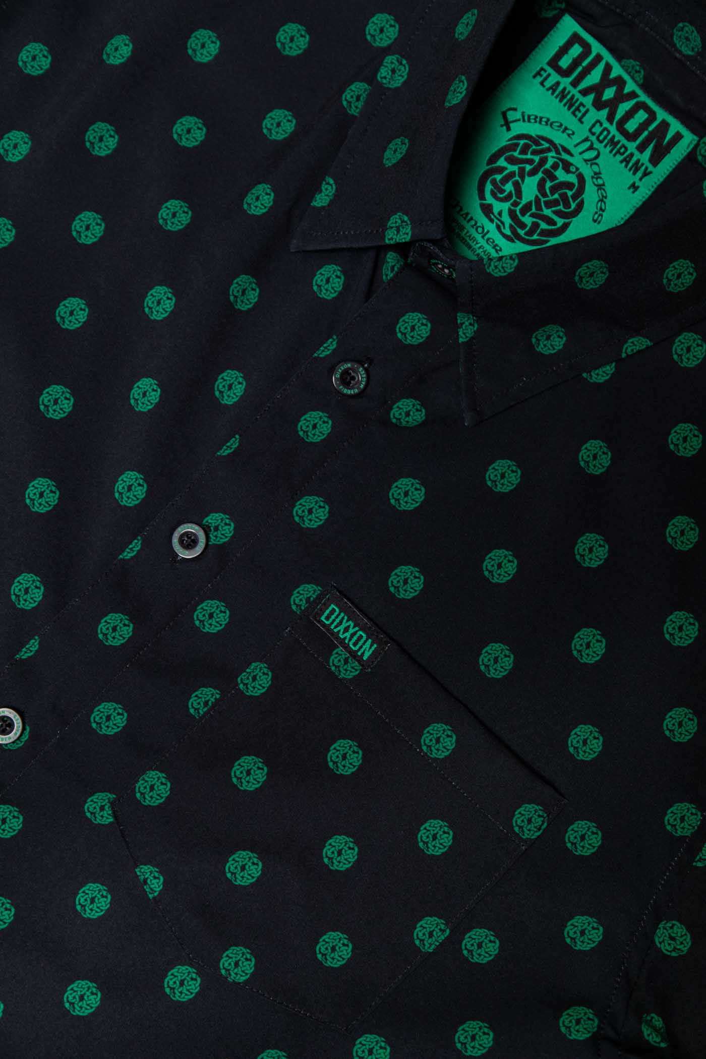 • Left chest pocket with a green and black Dixxon brand tag