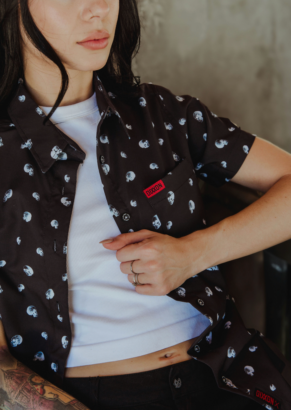 - Dixxon brand tag on the left chest pocket