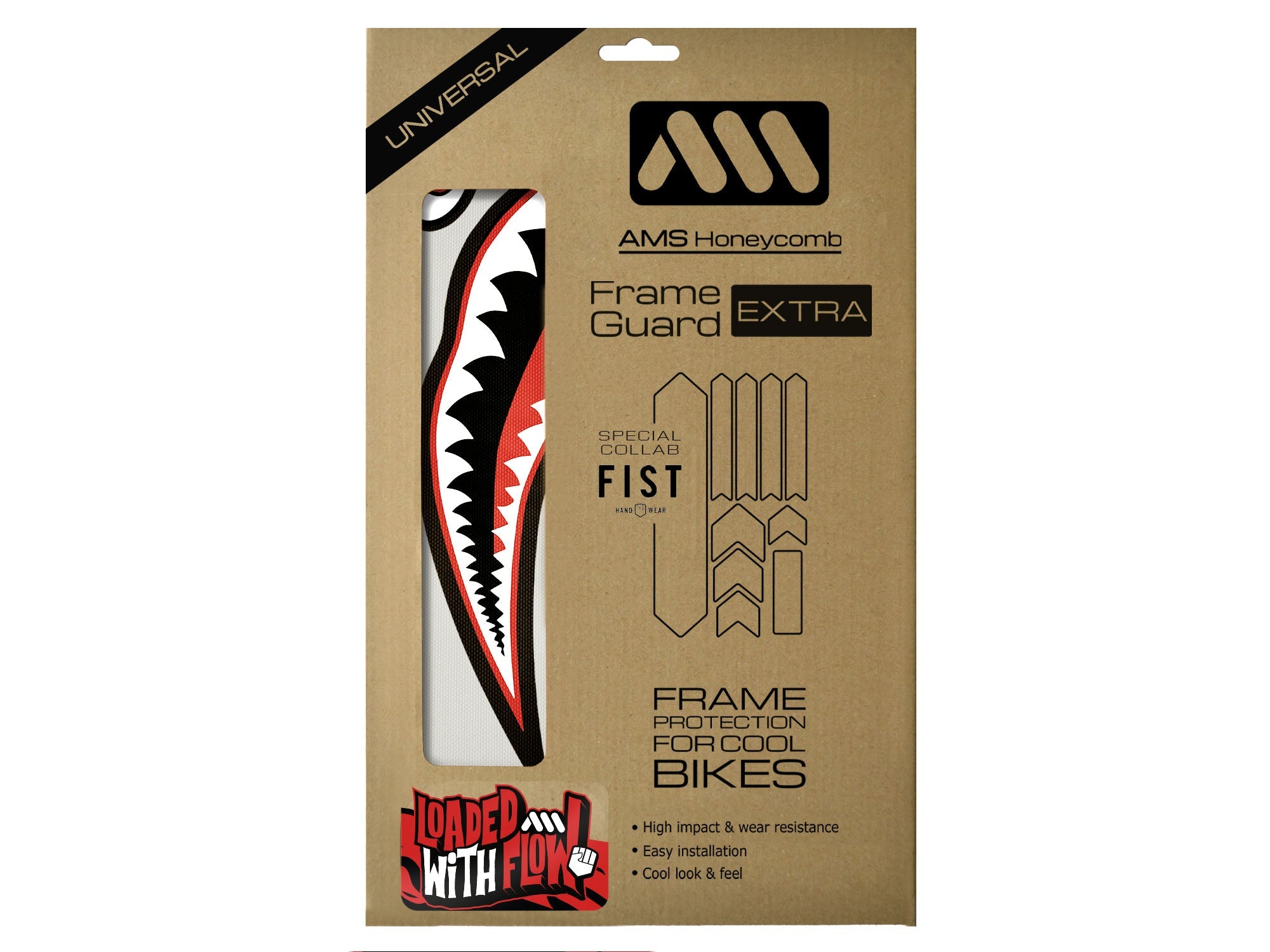 Unleash the full potential of your ride with the exclusive AMS X Fist Handwear Frame Guard Extra, featuring the bold and aggressive Jaws P-40 design, created by AMS. This unique collaboration brings together AMS’s expertise in bike protection and Fist Handwear’s bold style, resulting in a product that blends functionality with head-turning aesthetics.